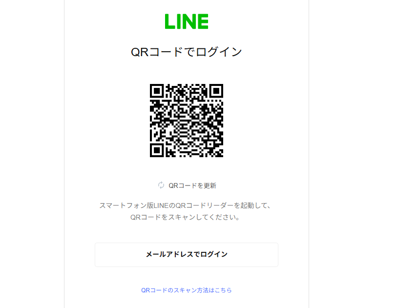 ログイン画面に表示されるQRコードを、スマホのLINEアプリで読み取る